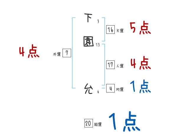 下園允さんの画数の鑑定結果
