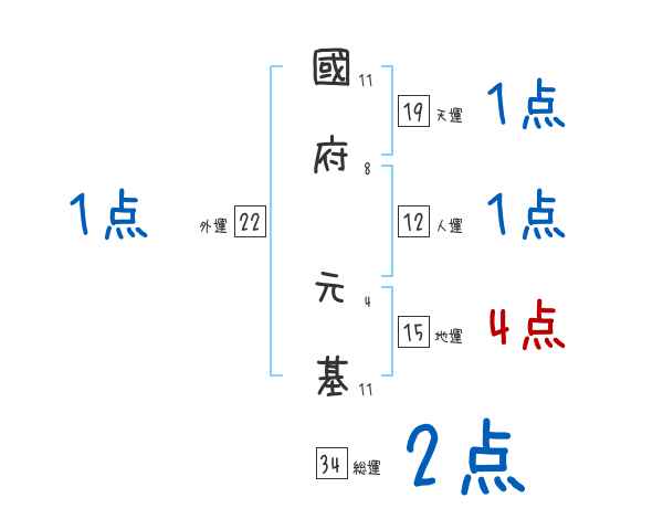 國府元基さんの画数の鑑定結果