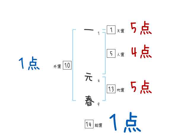 天運![]() | 一元春さんの天運は1画の5つ星!行動力、指導力があり出世し繁栄する。幸運に恵まれる。 家系が持つ宿命的な運勢を表します。祖先から受け継いだ苗字ですので自分の力が及びません。家柄を象徴します。 |