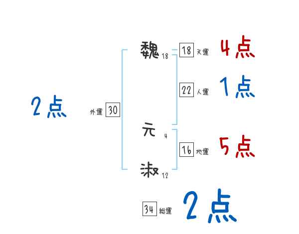 魏元淑さんの画数の鑑定結果
