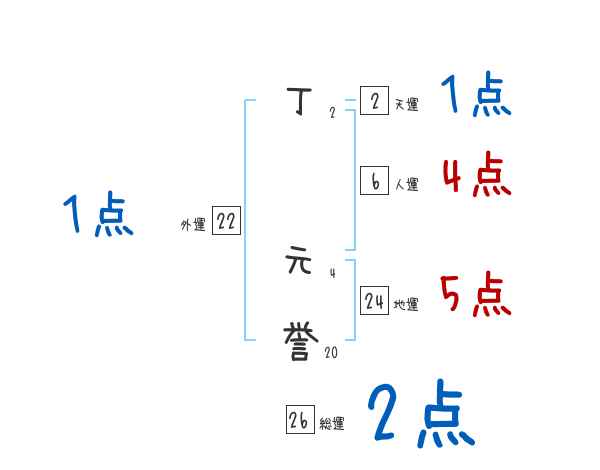 総運![]() | 丁元誉さんの総運は26画の2つ星!波瀾万丈かも。信頼できる人を大事にしましょう。 あなたの人生を表す1番重要な運勢です。生涯を通じて影響する総合運となり、主に50歳以降の晩年期に影響を及ぼします。 |