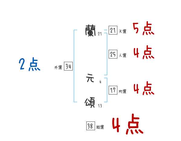 蘭元頌さんの総運は38画の4つ星