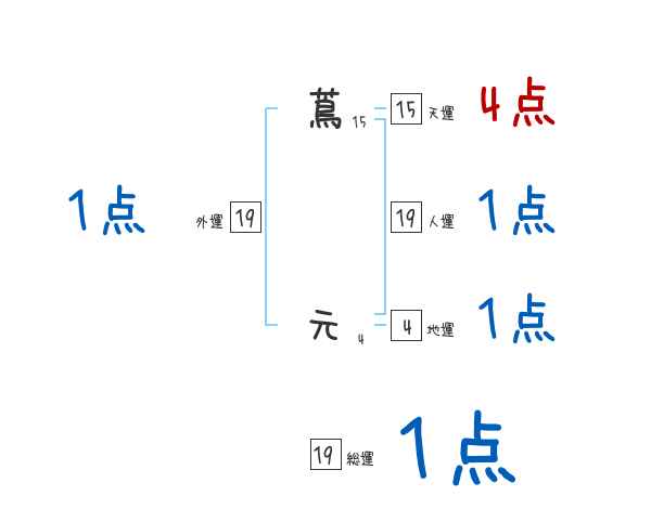 蔦元さんの外運は19画の1つ星