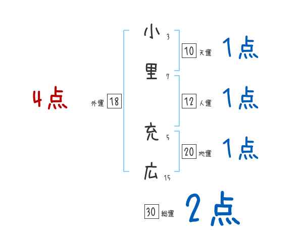 小里充広さんの画数の鑑定結果