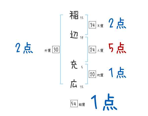 天運![]() | 稲辺充広さんの天運は34画の2つ星!独創性に優れるが、自尊心が強く災難に注意しましょう。 家系が持つ宿命的な運勢を表します。祖先から受け継いだ苗字ですので自分の力が及びません。家柄を象徴します。 |