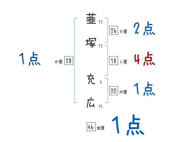 韮塚充広さんの画数の鑑定結果
