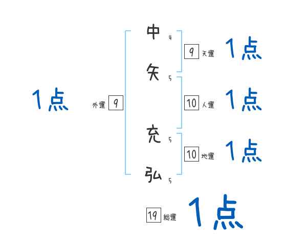 中矢充弘さんの画数の鑑定結果