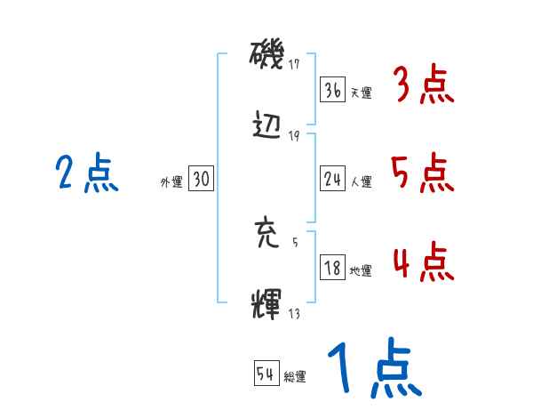 磯辺充輝さんの画数の鑑定結果