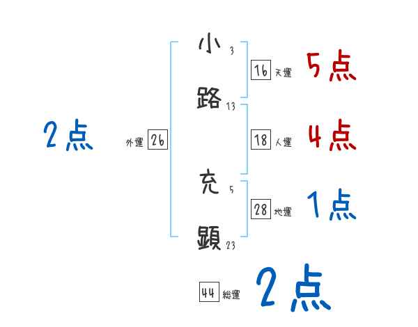 小路充顕さんの画数の鑑定結果
