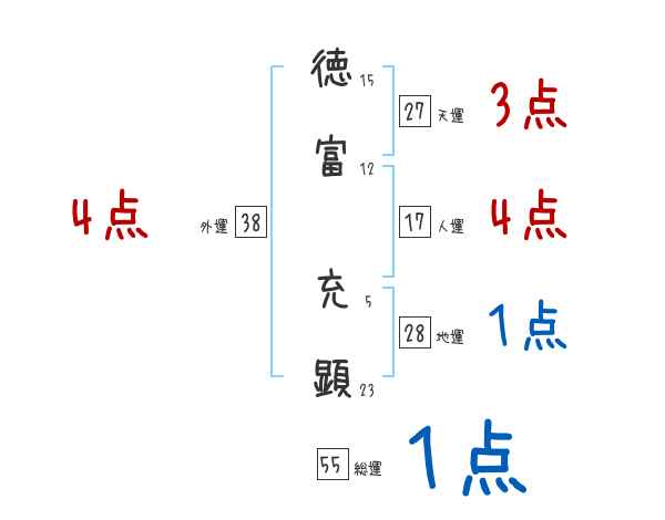 徳富充顕さんの画数の鑑定結果