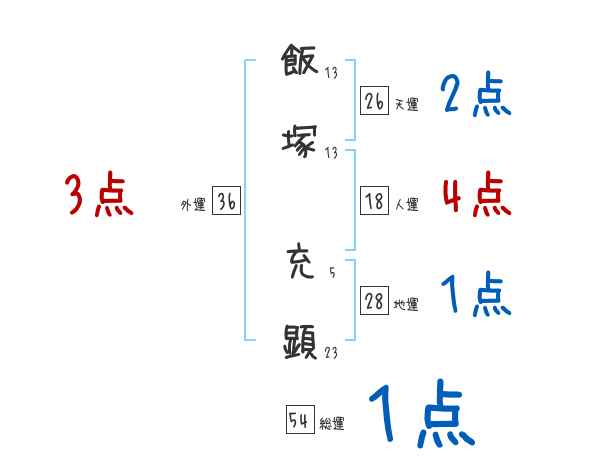 飯塚充顕さんの画数の鑑定結果