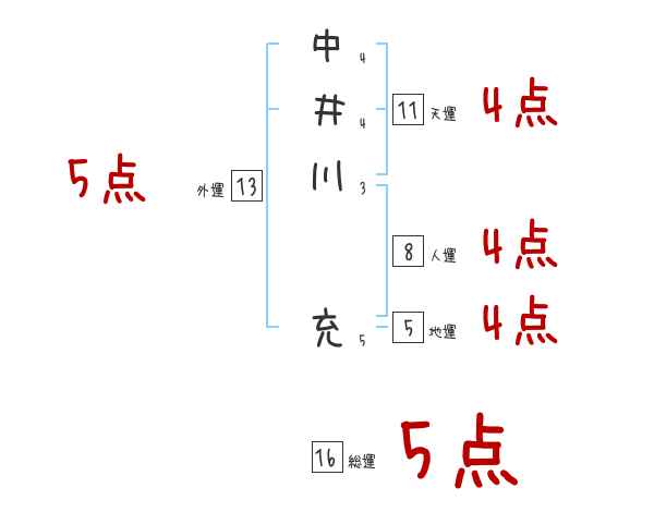 中井川充さんの画数の鑑定結果