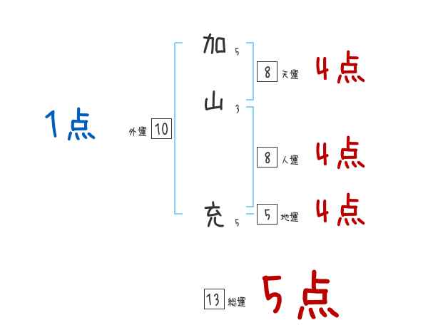 外運![]() | 加山充さんの外運は10画の1つ星!不安を感じやすい傾向。ストレスを抱えないように注意しましょう。 生活面を象徴する運勢です。外部から受ける影響力を表し、結婚運、家庭運や職場、環境への順応性を表します。 |
