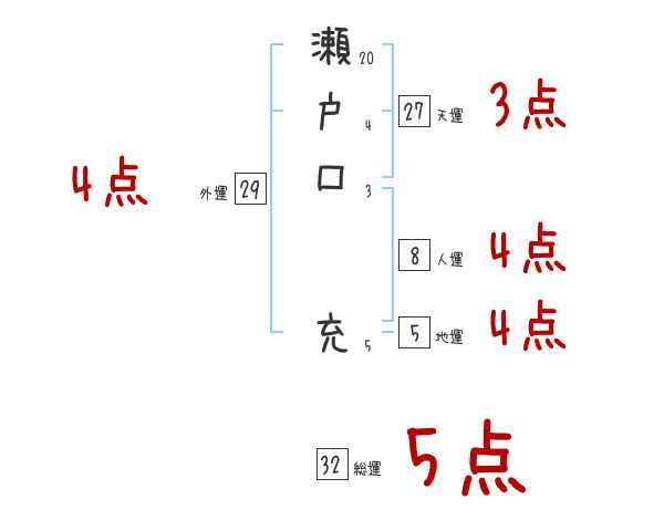 総運![]() | 瀬戸口充さんの総運は32画の5つ星!柔軟性があり成功する。チャンスが多く金運が良い。 あなたの人生を表す1番重要な運勢です。生涯を通じて影響する総合運となり、主に50歳以降の晩年期に影響を及ぼします。 |