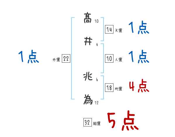 髙井兆為さんの画数の鑑定結果