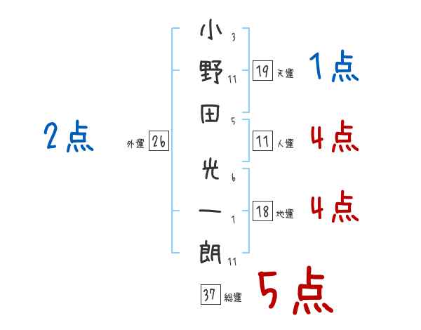 小野田光一朗さんの画数の鑑定結果
