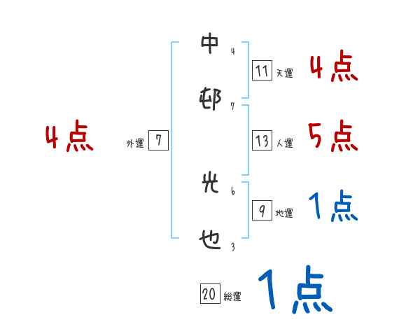 中邨光也さんの画数の鑑定結果