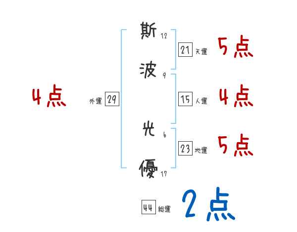 斯波光優さんの画数の鑑定結果