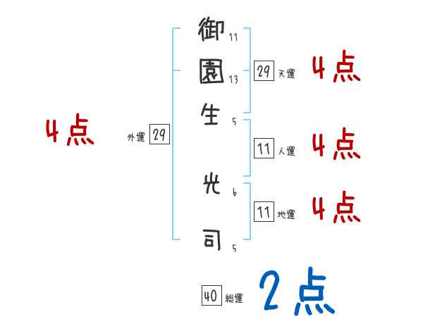 御園生光司さんの画数の鑑定結果