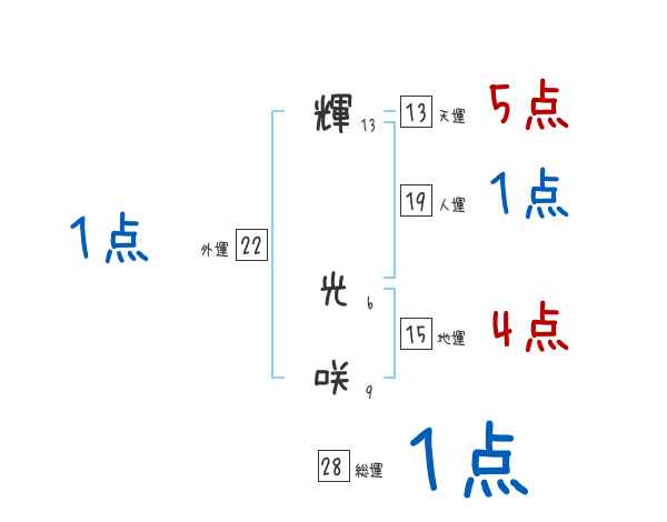 輝光咲さんの画数の鑑定結果