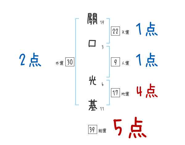 關口光基さんの画数の鑑定結果