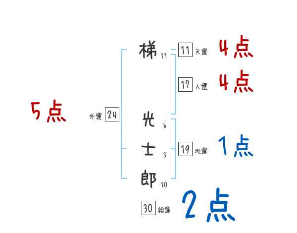 梯光士郎さんの画数の鑑定結果