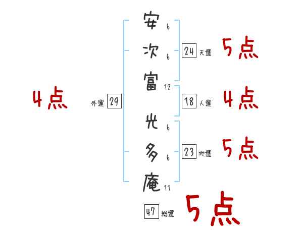 安次富光多庵さんの画数の鑑定結果