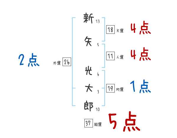 天運![]() | 新矢光大郎さんの天運は18画の4つ星!情熱的で剛気。忍耐力があり信頼される。 家系が持つ宿命的な運勢を表します。祖先から受け継いだ苗字ですので自分の力が及びません。家柄を象徴します。 |