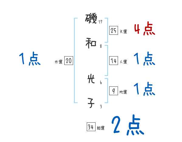 磯和光子さんの画数の鑑定結果