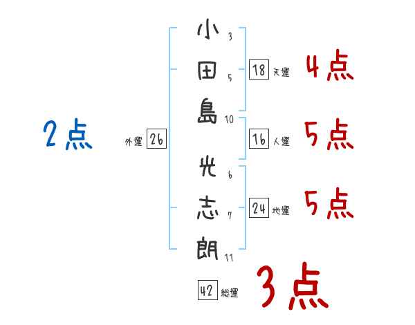 小田島光志朗さんの画数の鑑定結果