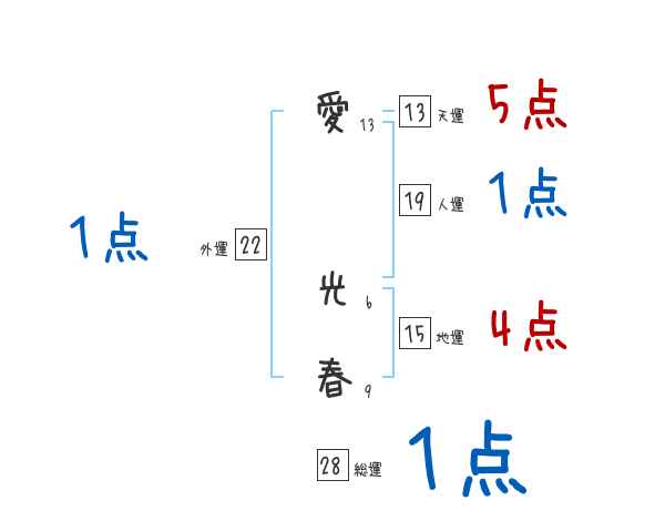 愛光春さんの画数の鑑定結果