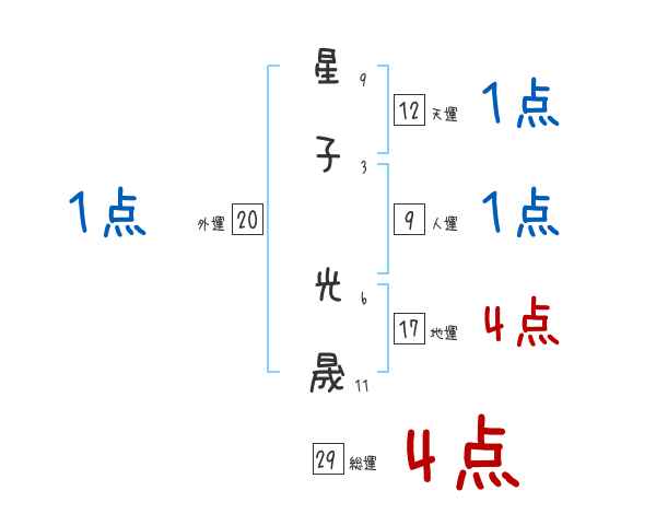 人運![]() | 星子光晟さんの人運は9画の1つ星!消極的で才能を発揮することが苦手なことも。周りの意見に耳を傾けましょう。 性格や才能などを表す2番目に重要な運勢です。人間関係や協調性、社会的な成功に影響します。主に20歳から50歳ぐらいまでの中年期の運勢を表します。 |