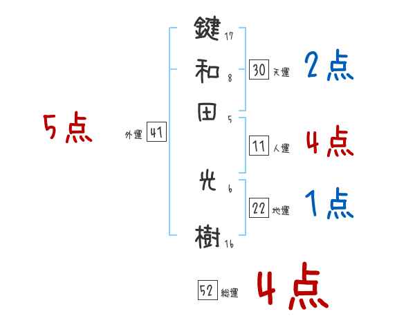 鍵和田光樹さんの画数の鑑定結果
