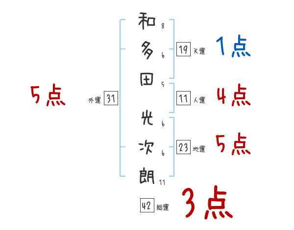総運![]() | 和多田光次朗さんの総運は42画の3つ星!病気に注意。多芸であるが消極的でおとなしい。 あなたの人生を表す1番重要な運勢です。生涯を通じて影響する総合運となり、主に50歳以降の晩年期に影響を及ぼします。 |