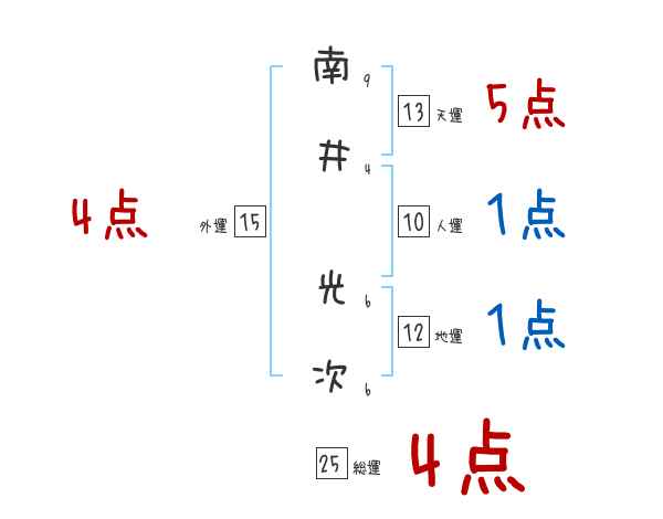 南井光次さんの画数の鑑定結果