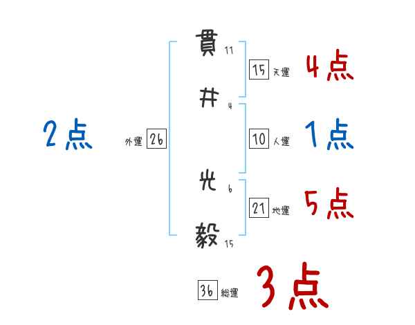 外運![]() | 貫井光毅さんの外運は26画の2つ星!波瀾万丈かも。信頼できる人を大事にしましょう。 生活面を象徴する運勢です。外部から受ける影響力を表し、結婚運、家庭運や職場、環境への順応性を表します。 |