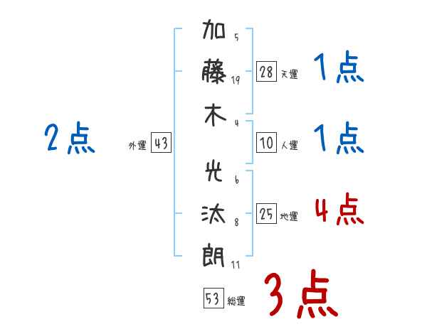 加藤木光汰朗さんの画数の鑑定結果