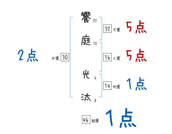 饗庭光汰さんの画数の鑑定結果