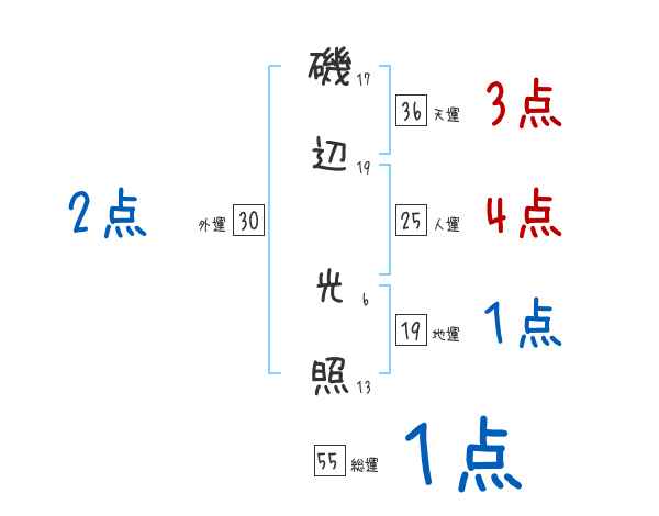 磯辺光照さんの画数の鑑定結果