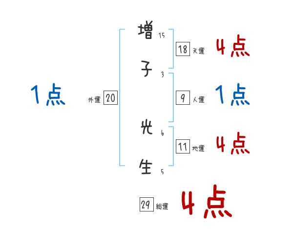 増子光生さんの画数の鑑定結果