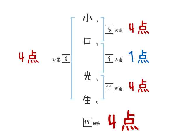 小口光生さんの画数の鑑定結果