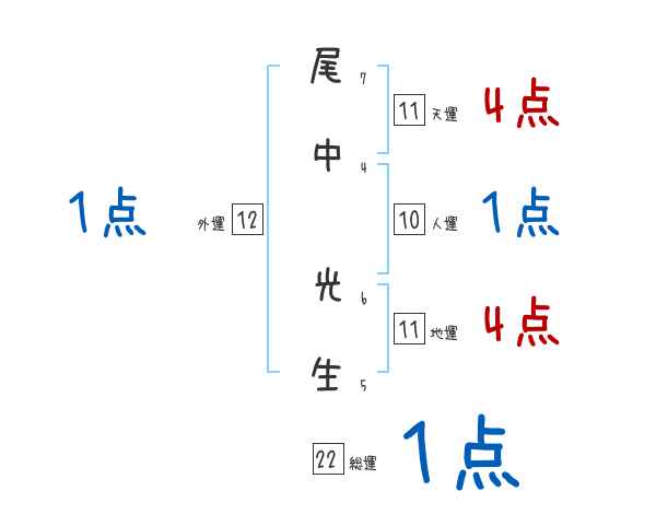 尾中光生さんの画数の鑑定結果