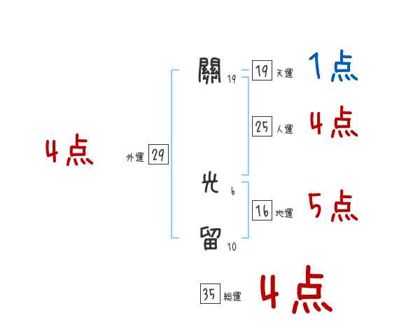 關光留さんの画数の鑑定結果
