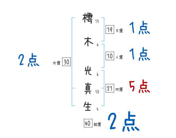 樗木光真生さんの画数の鑑定結果