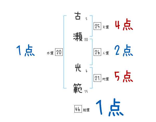 古瀬光範さんの画数の鑑定結果