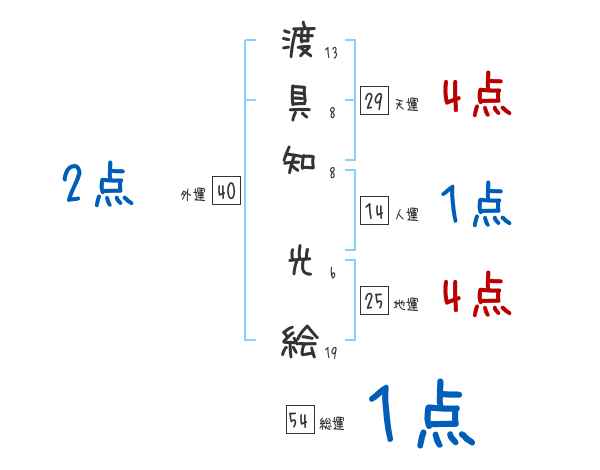 渡具知光絵さんの画数の鑑定結果