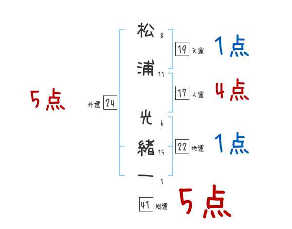 松浦光緒一さんの画数の鑑定結果