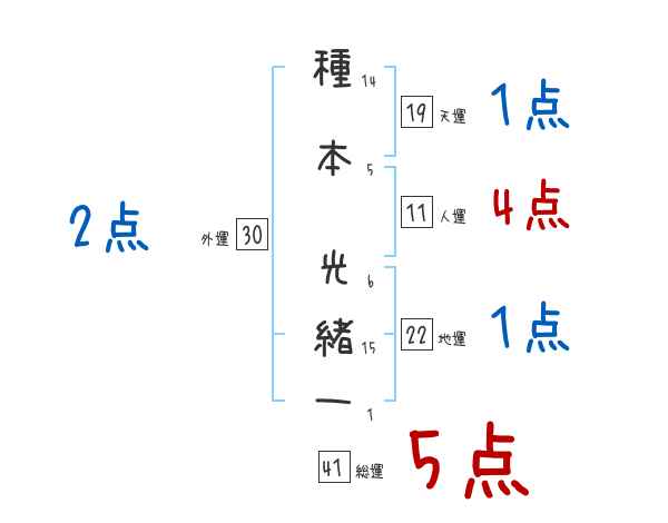 種本光緒一さんの画数の鑑定結果
