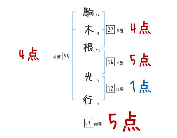 駒木根光行さんの画数の鑑定結果