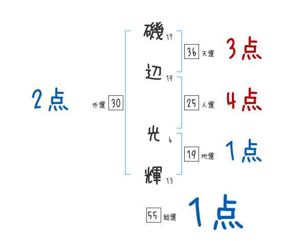 磯辺光輝さんの画数の鑑定結果